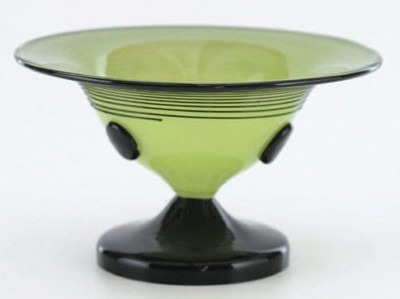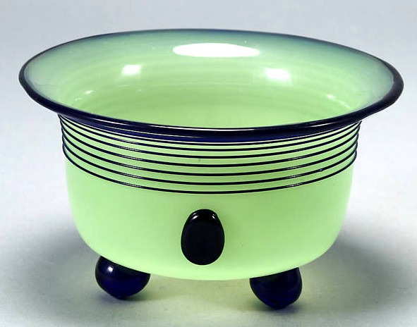 1916 - Found in several colors with combinations of threads, prunts and ball feet.