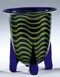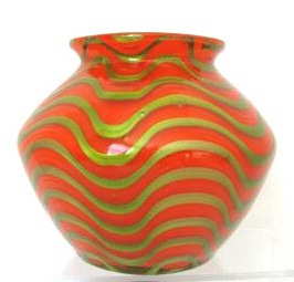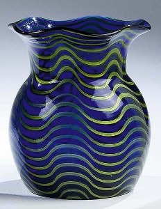 A post 1916 decor found on vessels with a cobalt or orange ground and yellow or red wavy lines.
