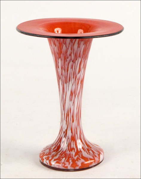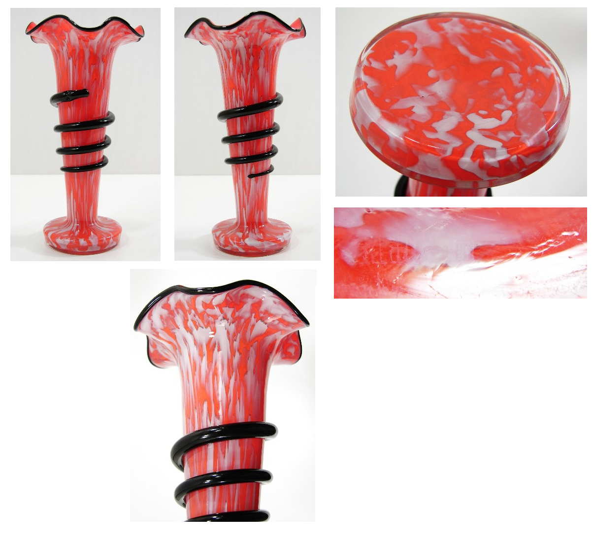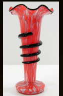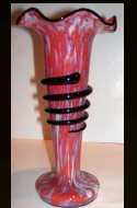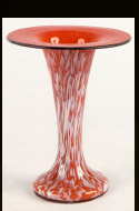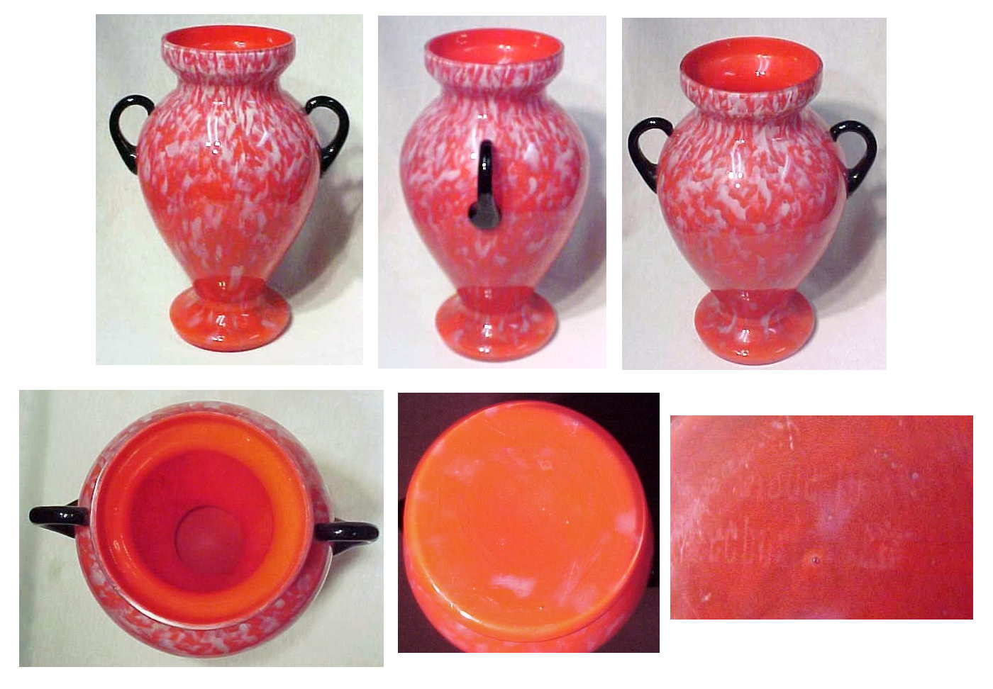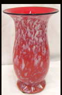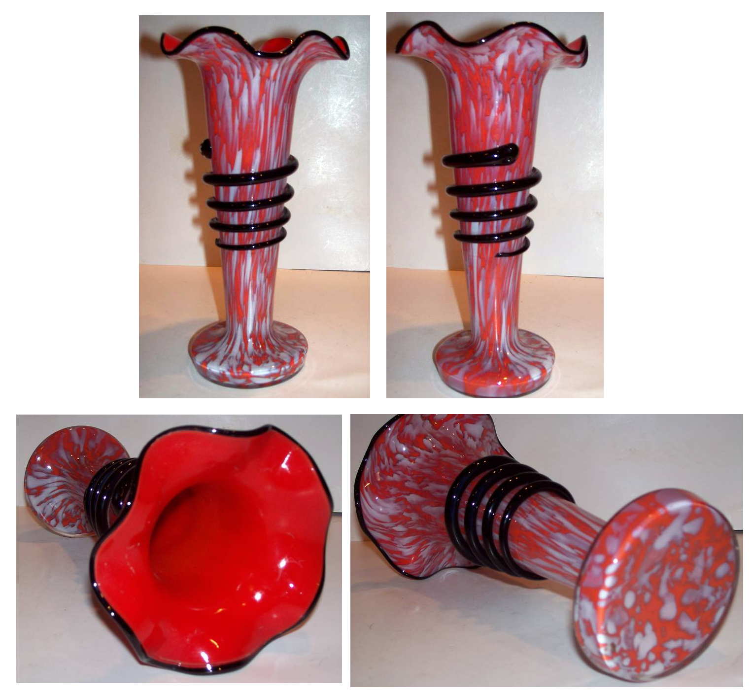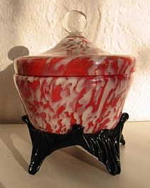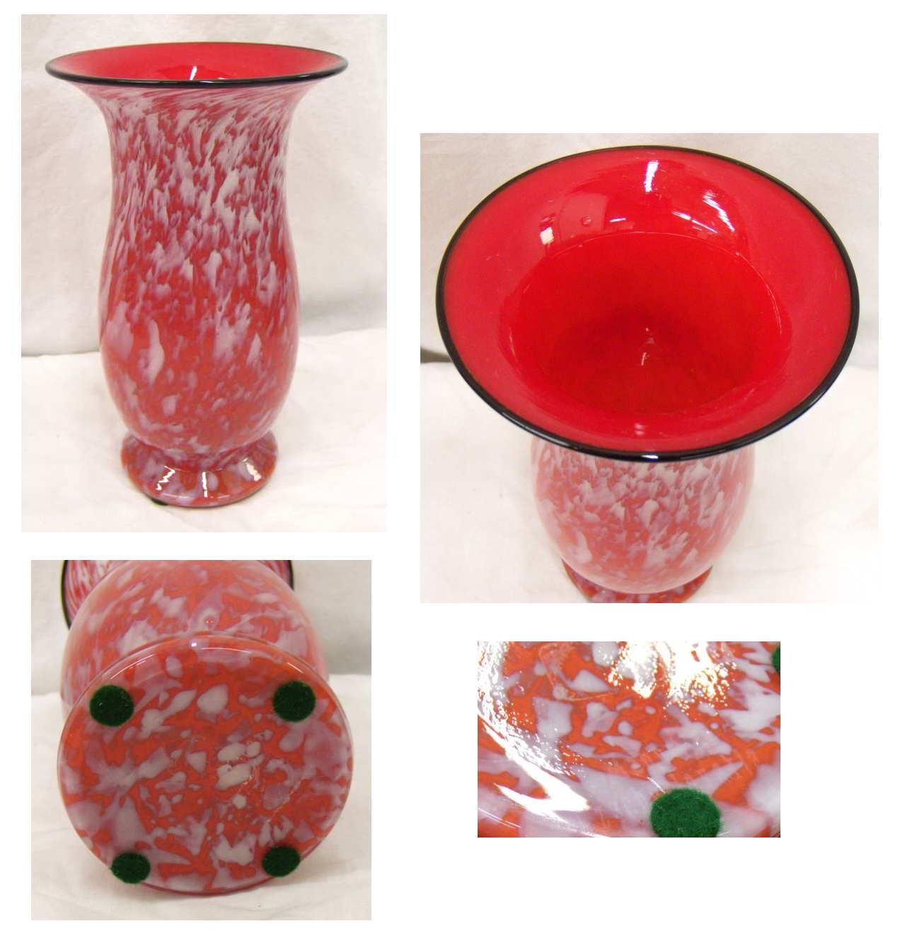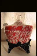 A decor found with a bright red interior accompanied by a softer red exterior with mottled gray.
